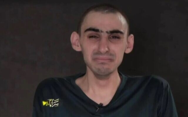 Ram Braslavski, in a still from a propaganda video published by Islamic Jihad on July 31, 2025 and cleared for publication by his mother on August 1, 2025.