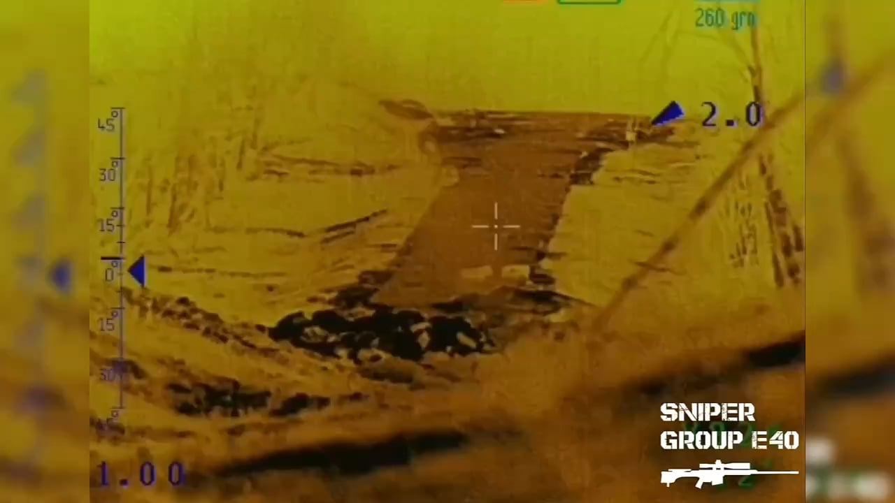 A group of Russian soldiers moving in a tight group was spotted by a Ukrainian sniper who opened fire on them at a distance of about 1150 meters, a Barret MRAD was used. No location was given.