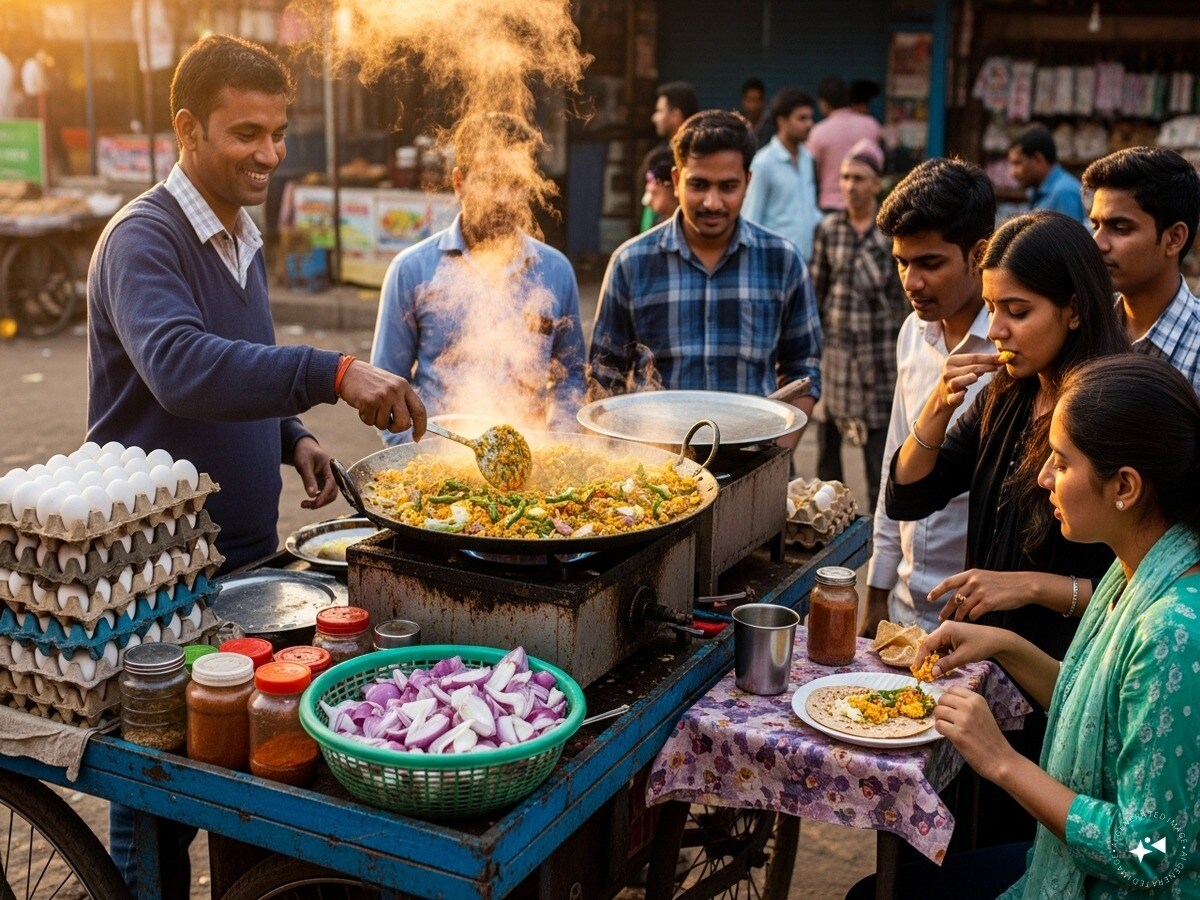 Consider the economics: preparing 4 kg of chicken daily costs around Rs 1,200 (including ingredients and cooking gas), while the same quantity, sold at Rs 700 per kg, earns Rs 2,800, yielding a net profit of Rs 1,600. Similarly, egg burji, a staple among bachelors and office-goers, costs roughly Rs 10 to prepare but sells for Rs 30 per 100 grams, offering a daily profit of around Rs 600 from 3 kg of sales. (AI-Generated Image)