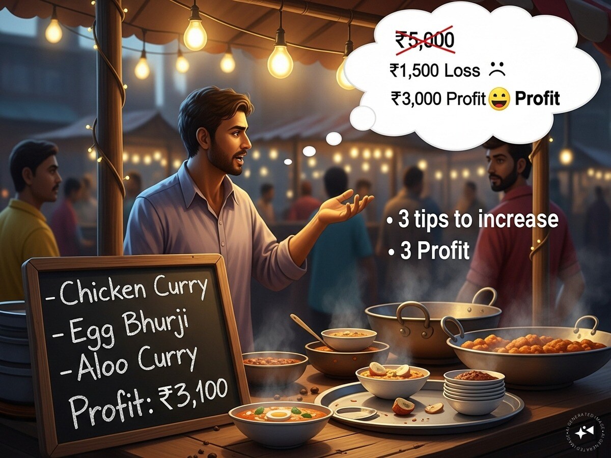 Vegetarian dishes such as potato fry add further margins. 1 kg of potatoes costs Rs 40, and the total preparation cost for 4 kg comes to about Rs 300. Sold at Rs 30 per 100 grams, that batch brings in Rs 1,200, resulting in a profit close to Rs 900. Combining the profits from chicken, eggs, and vegetables, daily earnings can exceed Rs 3,000, even after accounting for unsold portions. (AI-Generated Image)