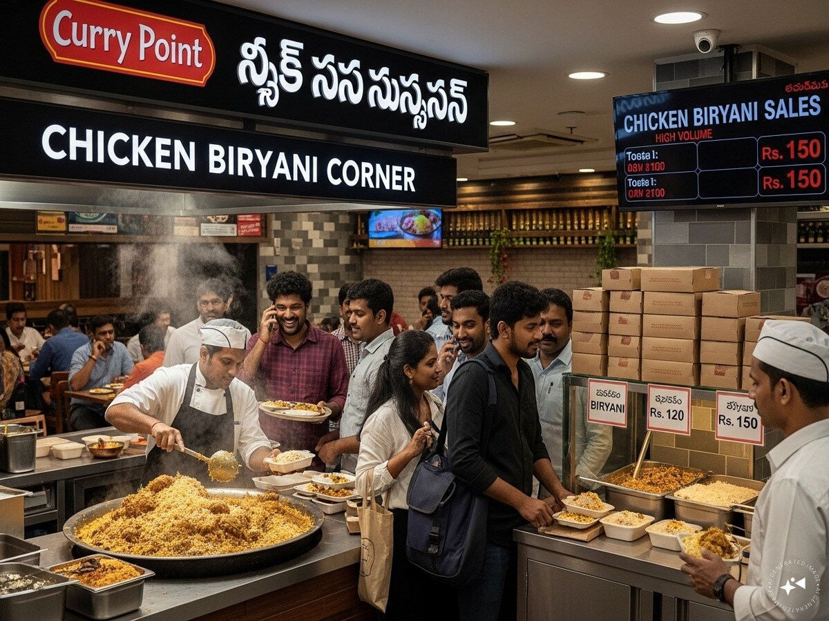 Entrepreneurs are further amplifying their profits through a few smart additions. Setting up a biryani corner within the same space attracts larger crowds. A single chicken biryani costs about Rs 80 to prepare and sells between Rs 120- Rs 150, generating profits of up to Rs 2,000 a day from 50 plates, even after accounting for potential leftovers. (AI-Generated Image)