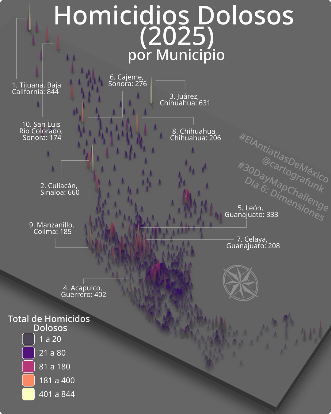 Intentional Homicides x Mexico 2025 by Municipality Posted by cartografunk Tags:DataData Is BeautifulDataIsBeautiful 1 comment Nice graphic design sad subject matter Comments are closed.