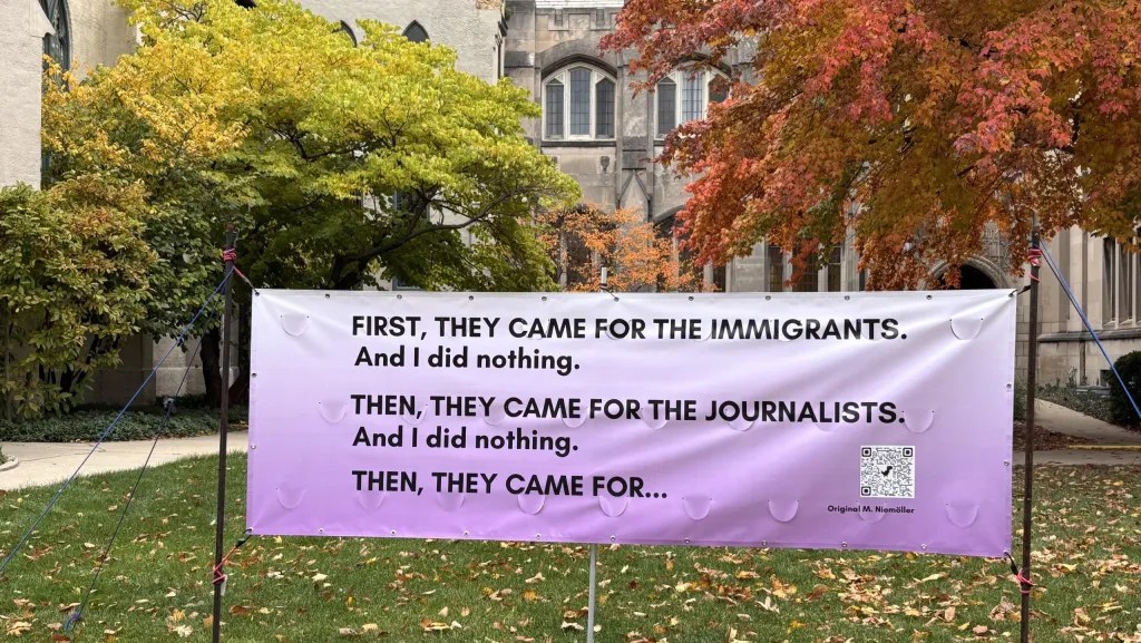 Individuals used to line up here, outside the church. But this year, the waiting area was moved inside. Credit: Jeff Hirsh