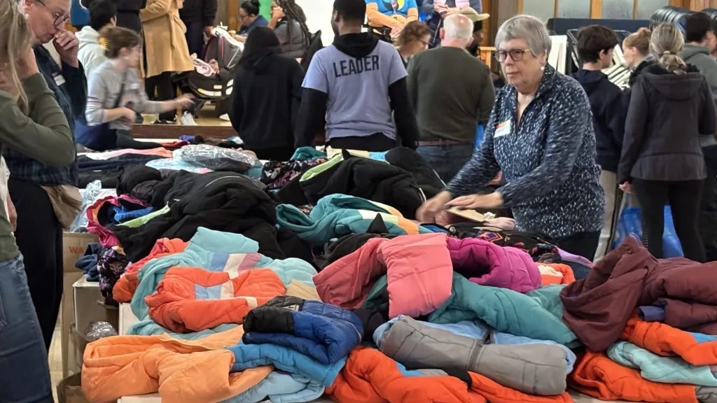 Eli Cooper-Nelson, in-kind donations manager at the agency, says that some case workers have been picking up coats to bring directly to clients, so those individuals “don’t have to come in person.”