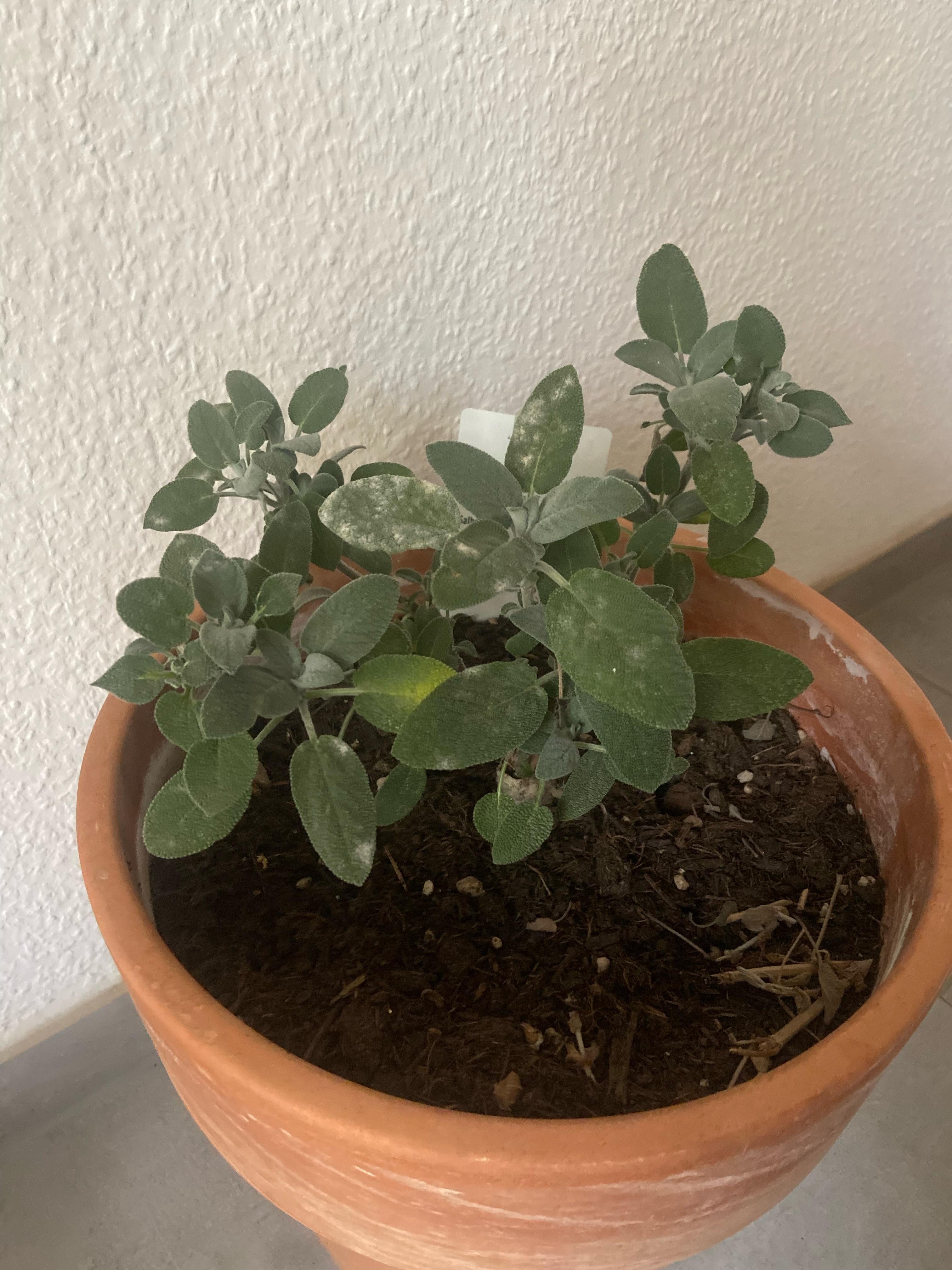 1. Sieht nach Mehltau aus – kommt meist von zu viel Feuchtigkeit oder zu wenig Luft. Befallene Blätter ab, dann mit Milch-Wasser (1:9) oder Backpulverlösung einsprühen. Stell ihn sonniger, Erde lockern und nur gießen, wenn sie richtig trocken ist.