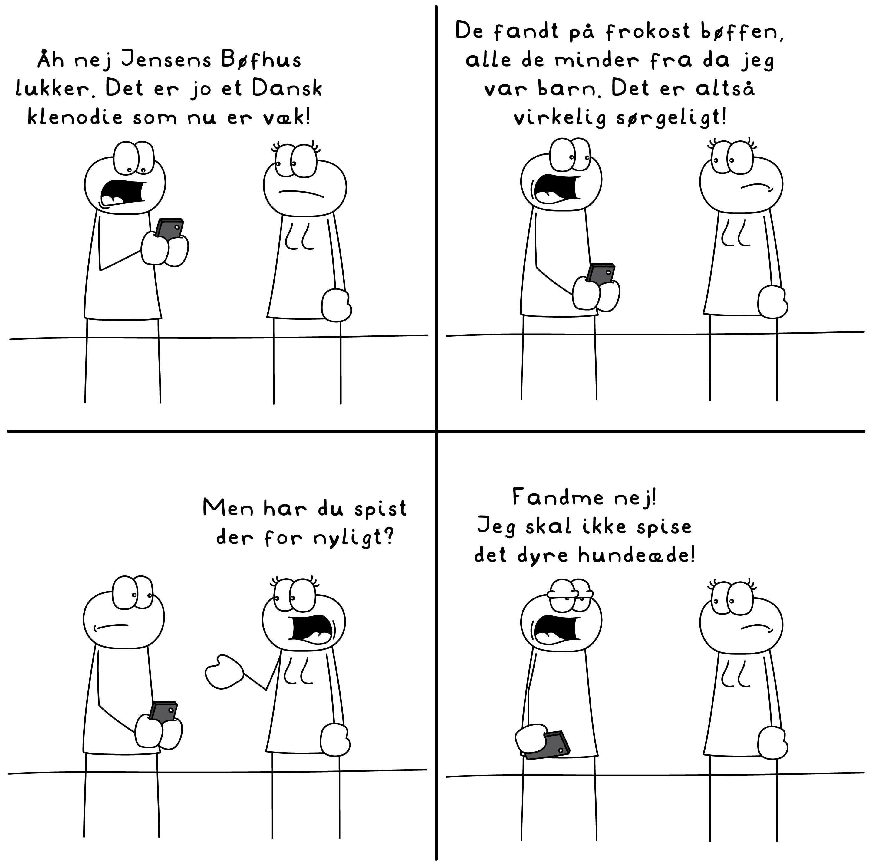 Jeg spiste meget på J.B.H. tilbage i 2011-2013, primært til frokost sammen med en veninde, og der kostede en frokostbøf 65 eller 85 kr. eller noget, det var super nice. Kvaliteten var varierende og det var ingen servicemæssig fed oplevelse, men det var billigt og maden var ikke _super elendig_ dengang til prisen.