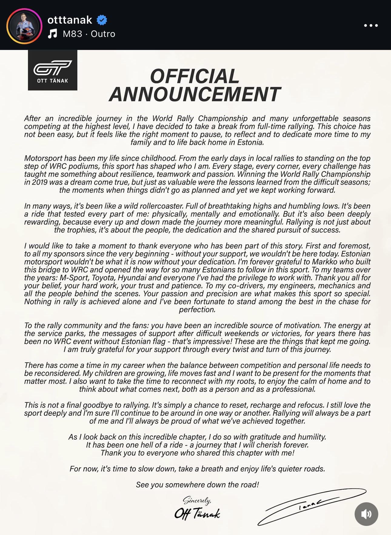 Nojah, ega tal pärast tiitli võitmist pole enam õnne olnud kah, või vajadust midagi tõestada. Ralli üldse mõttetuks muutunud, vanameister Ogier tuleb pensionilt ja tõmbab kõigile koti pähe.