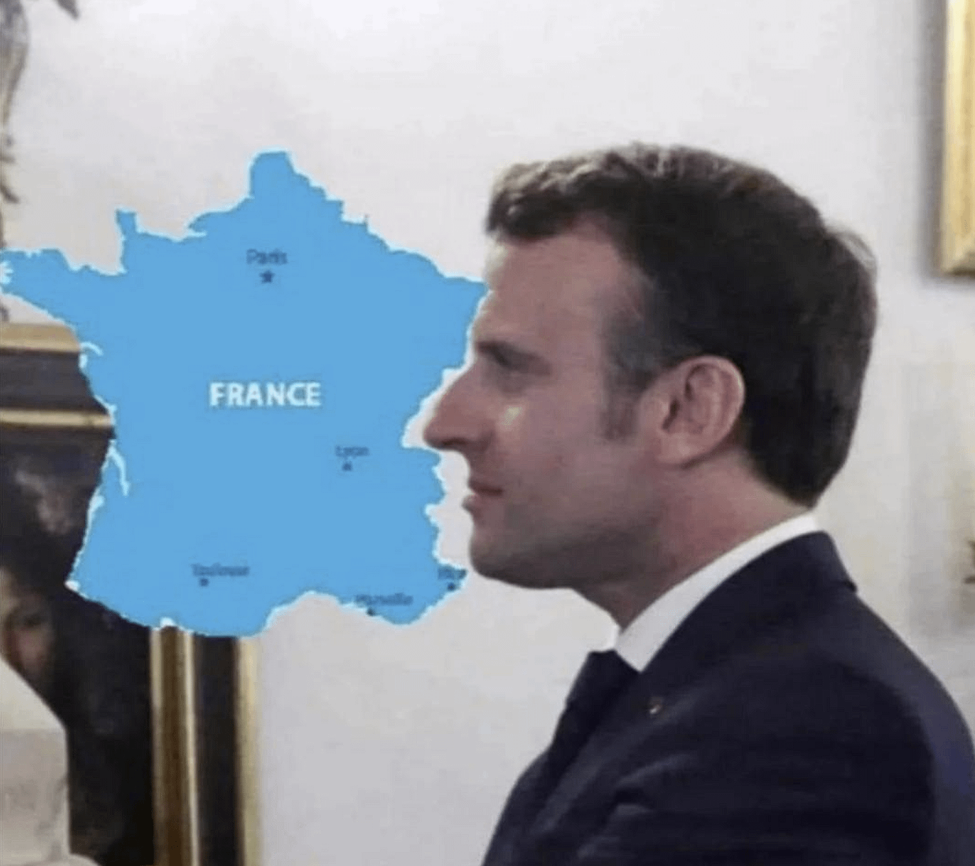 Explain what? There is a brest in the west side of France and Macron puts his face in the total opposite side of it. Thus, it’s a meme about the french being gay.