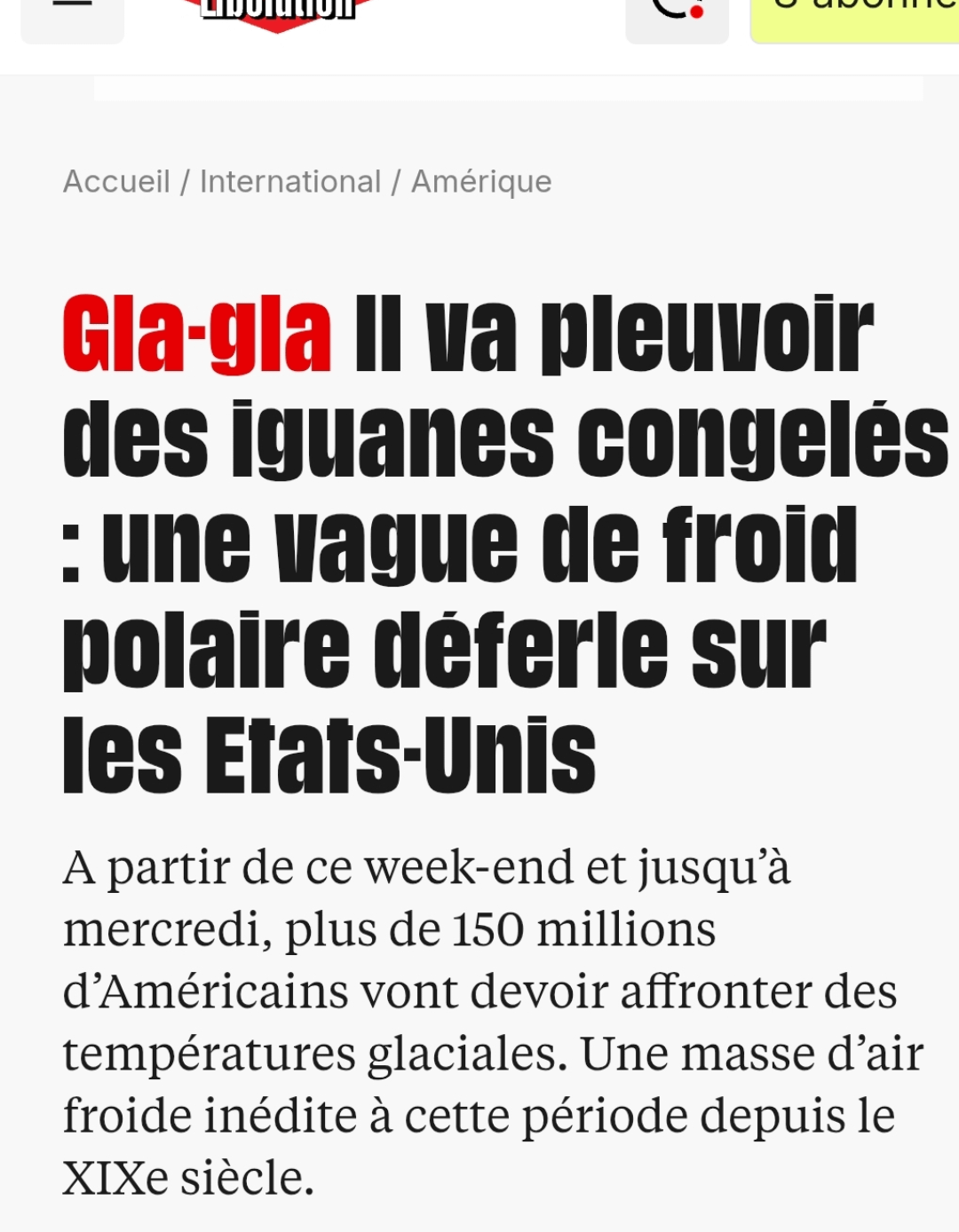 Bon je vous évite la recherche, il va faire très froid, les iguanes vivent dans les arbres, ils vont geler et tomber. Ça nous change de la pisse de vache. by Arretetonchar Tags:franceMemesrance 1 comment ils font moins les malins ces batards Comments are closed.