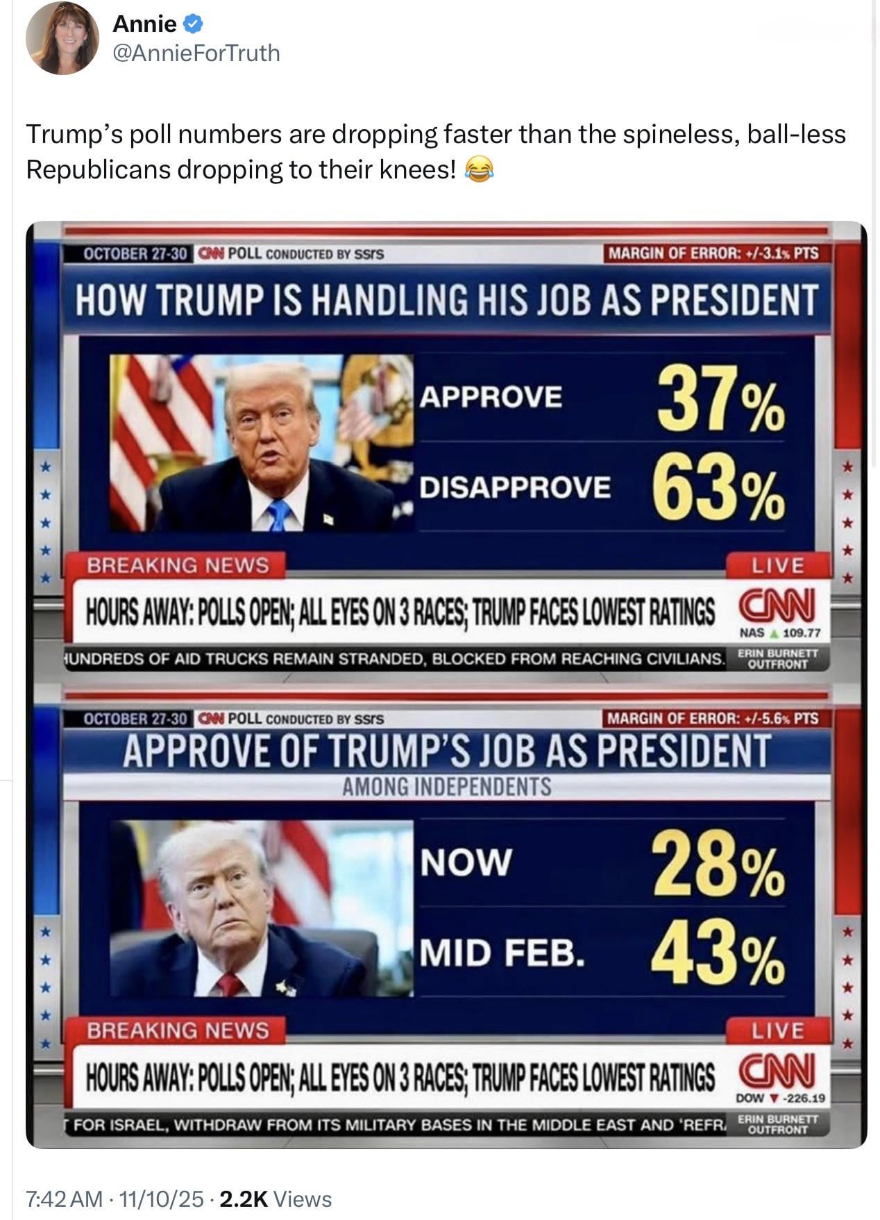 His approval rating is lower than the IQ of the average MAGAT rally.
