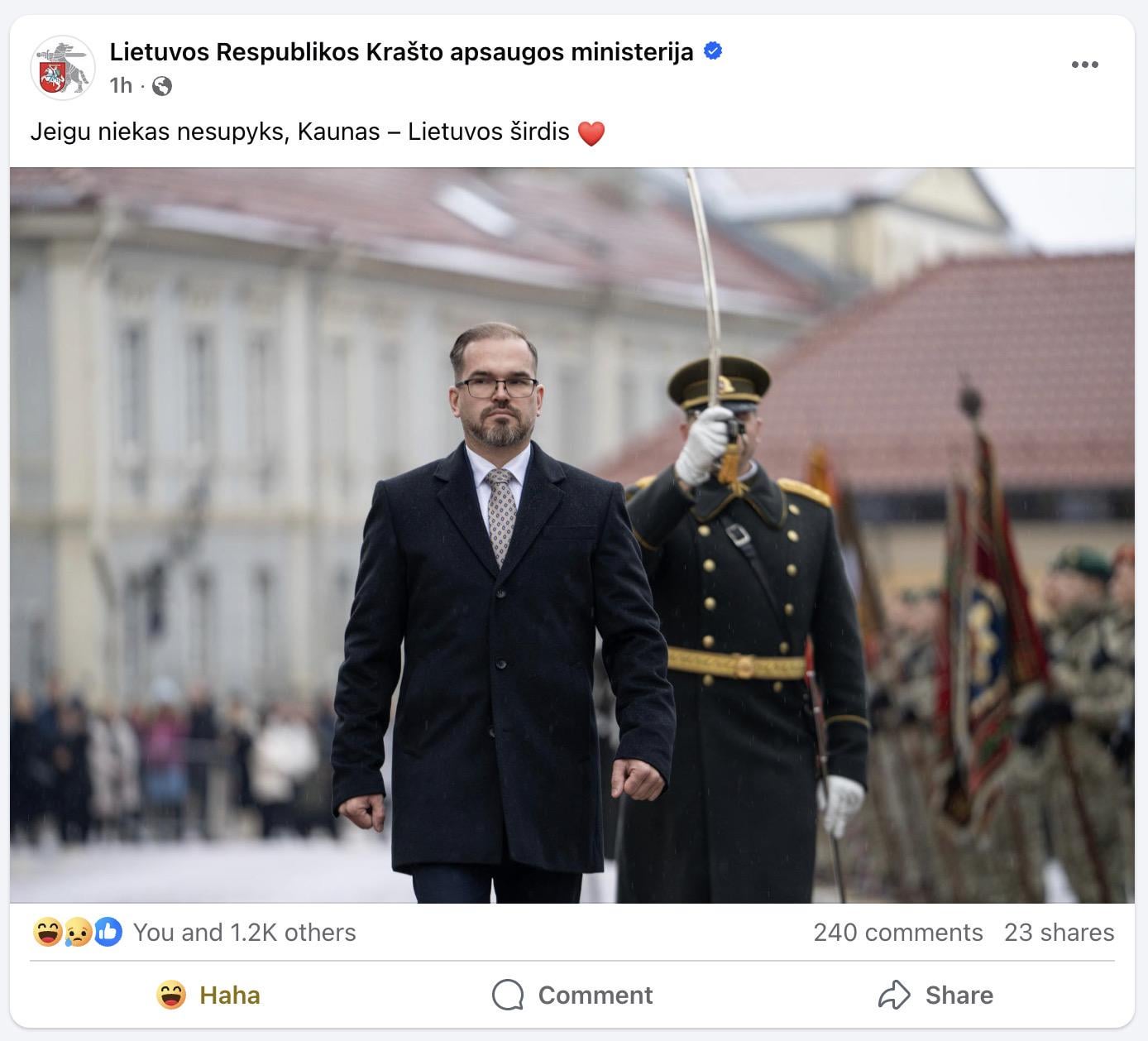 Kas labiau cringe? Ar kad tai oficialus Krašto apsaugos postas, kaip ir tas su Danute, no, seni.