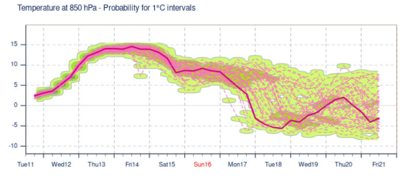 Nateraz je to však vzdialená vyhliadka, no ako vidieť na ansámbly, tak na začiatku týždňa sa začne v počasí konečne niečo diať a chladnejšie počasie je vysoko pravdepodobné.
