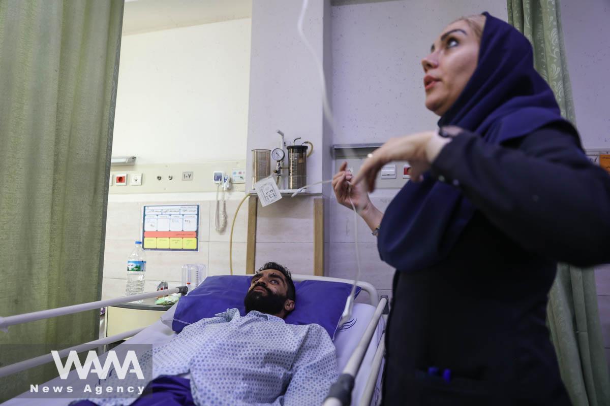 An injured man treated in a hospital, amid the Iran-Israel conflict, in Tehran, Iran, June 21, 2025. Majid Asgaripour/WANA (West Asia News Agency)