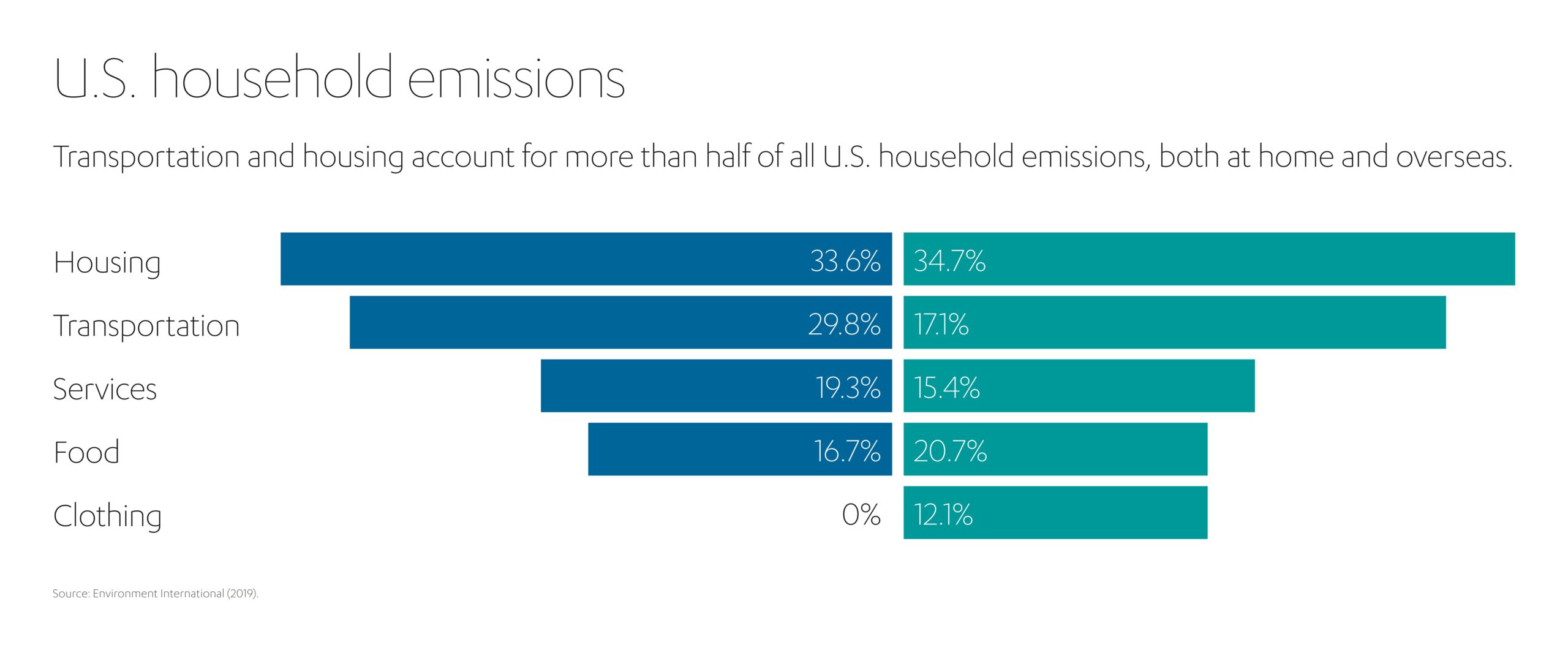 In some cases, trends in consumer behavior can even negate the impact of technological and regulatory improvements. Research from 2019, on emissions generated by US households, for example, found that even though cars have become more efficient, transportation emissions have risen over the past two decades – despite “significantly reduced tailpipe emissions” and improvement in cars’ fuel economy by nearly a third[11]. These sustainability improvements were attributed to regulatory changes at the state and federal level. But the researchers said that emissions had nonetheless continued to increase, due to factors including a growth in ownership of household vehicles, and people’s desire to travel more.