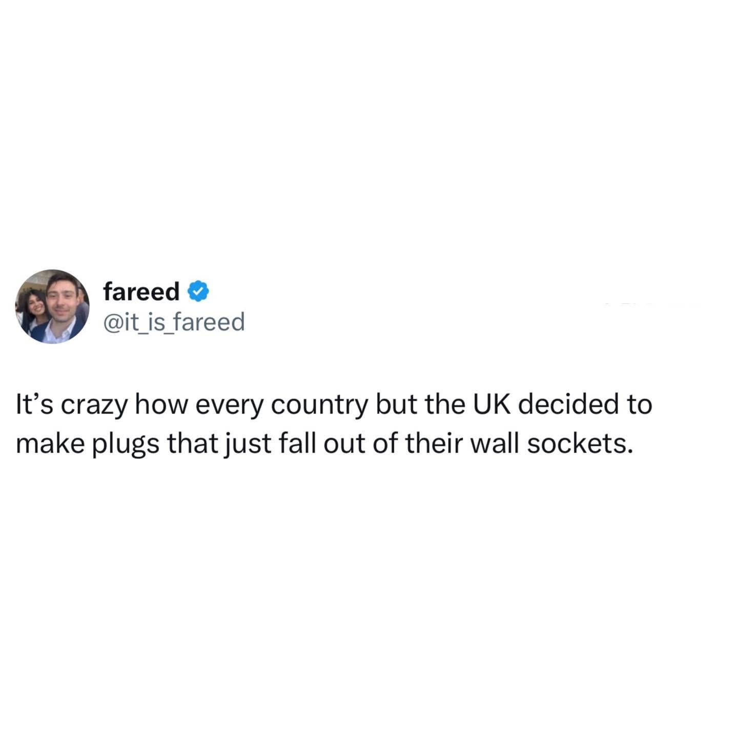 13. People can talk a lot of valid shit about the UK but no one can knock our plugs.
