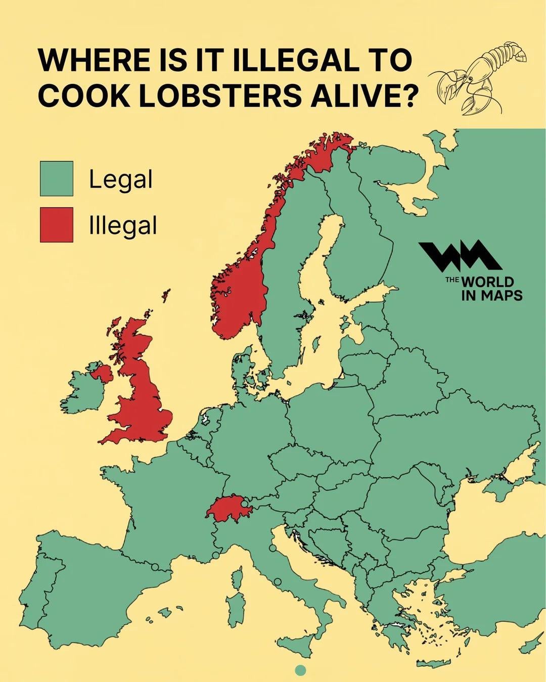 So there is this map of the countries that have allegedly banned boiling lobsters alive and i wanted to know how true it was for Norway since these maps aren’t very trustable to say the least.