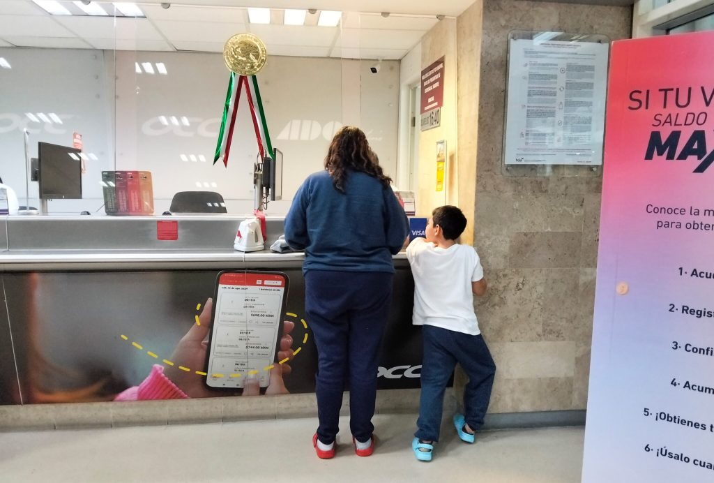 A mother and son who were deported to Tapachula after attempting to seek asylum buy bus tickets home. The mother was worried about her safety but didn’t know where else to go. Photo: Kate Morrissey.