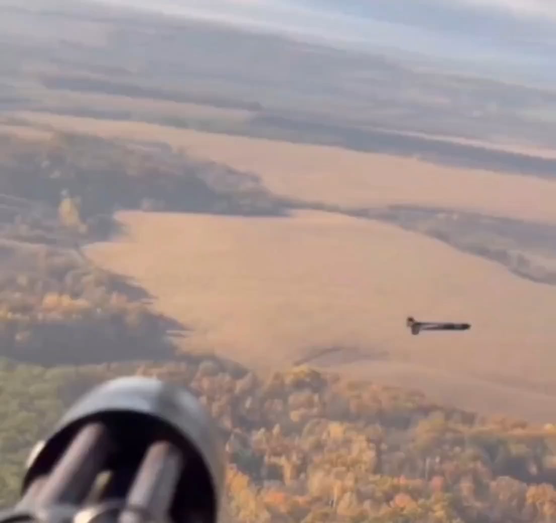 The crew of the Mi-8 helicopter of the Armed Forces of Ukraine shoots down a Russian kamikaze drone “Shahed-136” with fire from the onboard M134 “Minigun”