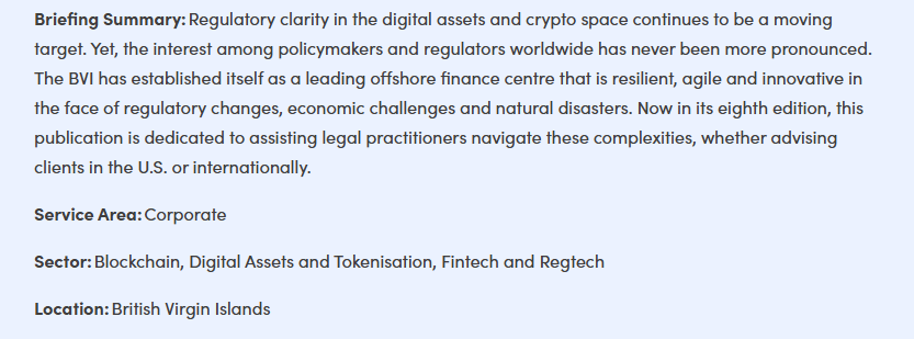The BVI has established itself as a leading offshore finance centre that is resilient, agile and innovative in the face of regulatory changes, economic challenges and natural disasters. Companies, institutions and individuals, including those operating in the cryptocurrency, blockchain technology and Web3 space, use BVI vehicles to support their international business activities in order to benefit from the familiarity and stability of the BVI’s English common law-based legal system, tax-neutral treatment and business-friendly flexibility of the BVI’s regulatory and judicial regime.
