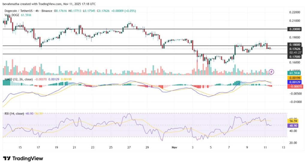 Currently, the price of Dogecoin (DOGE) is at $0.17, showing a decrease of 2% in the last 24 hours. The market is showing a consolidation trend with the price moving between the support level at $0.17 and the resistance level at $0.18. A tipping point above $0.18 will probably trigger an increase, and the short-term targets are at $0.19 and $0.20. Dogecoin (DOGE) price analysis remains bullish in the short term.