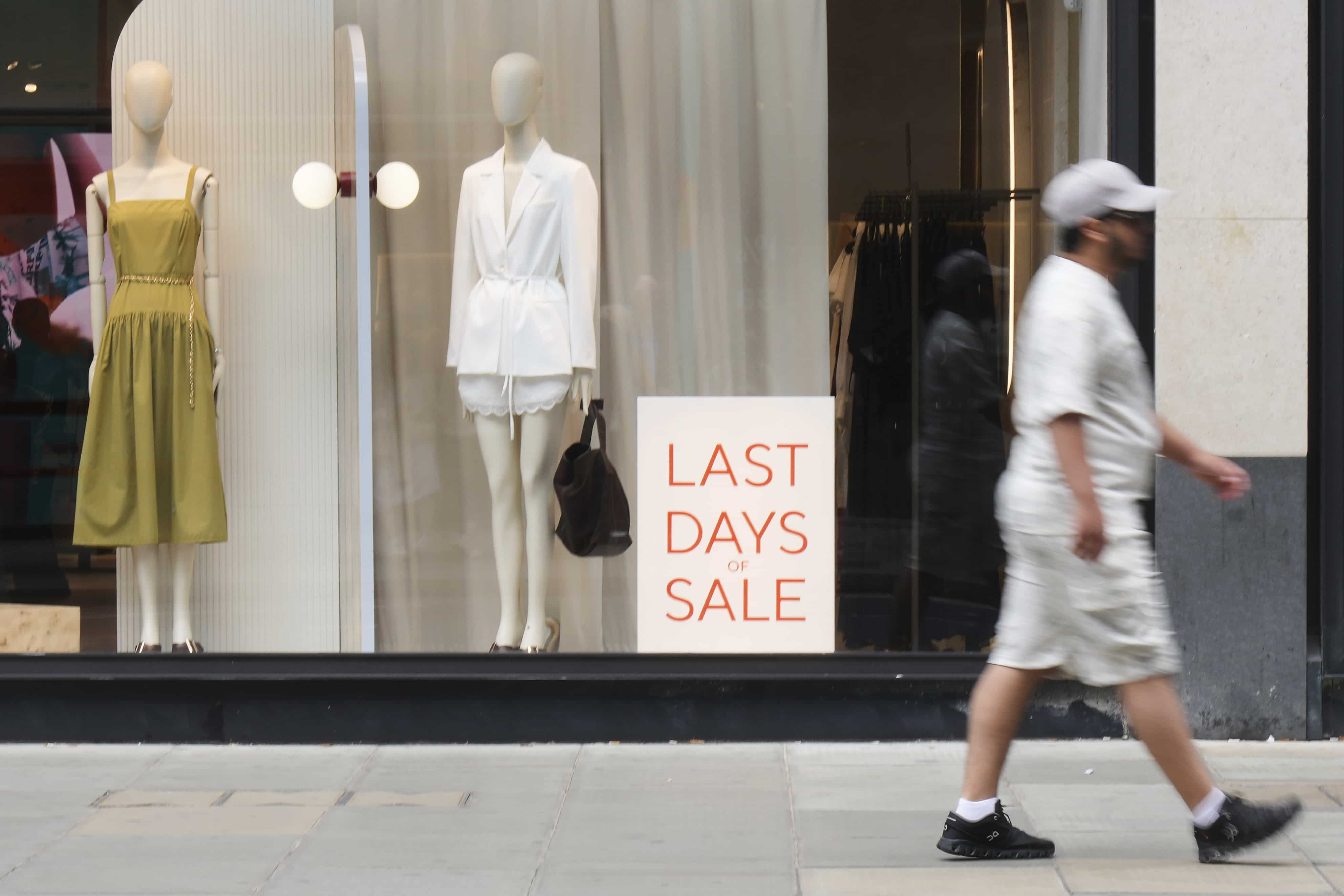 Pedestrians walk along Oxford Street past a shop having a summer sale in London, Aug 7, 2025. (PHOTO / AP)