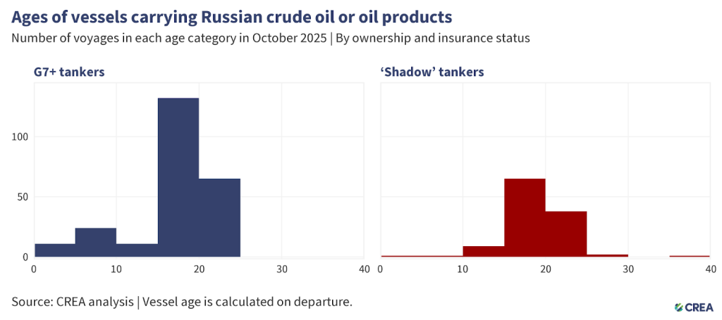 In October 2025, 360 vessels exported Russian crude oil and oil products, of which 117 were ‘shadow’ tankers. Forty-one ‘shadow’ tankers were at least 20 years or older.