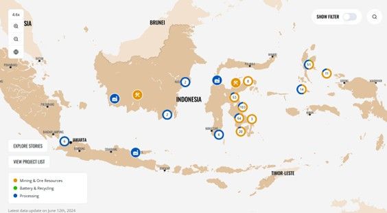 A map of the 357 nickel mining projects across Indonesia. Credit: China-Global South Project.