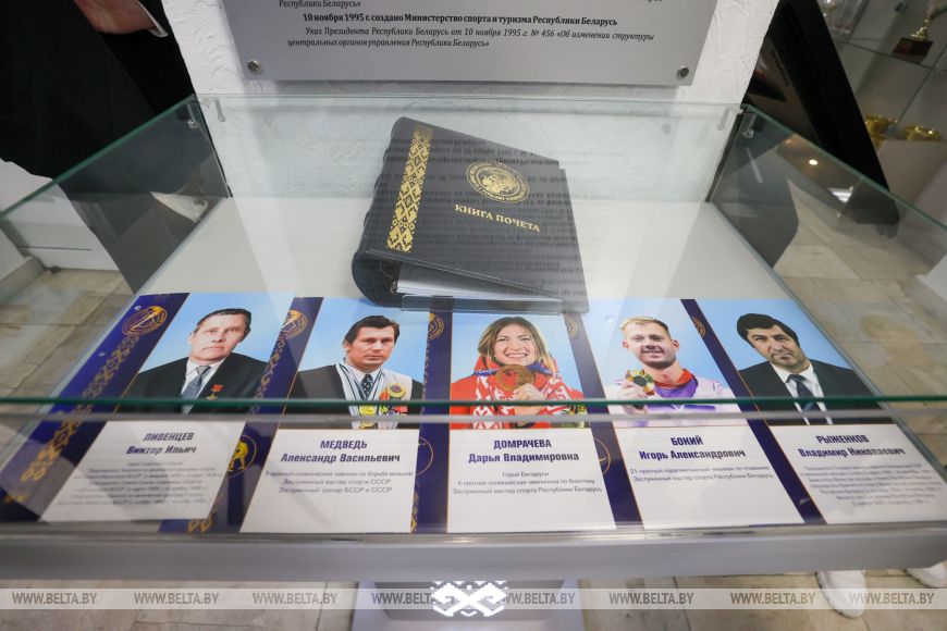 The Honor Book includes four-time Olympic biathlon champion Darya Domracheva, 21-time Paralympic swimming champion Ihar Boki, three-time Olympic champion and best wrestler of the 20th century Aleksandr Medved, former BSSR sports committee chairman Viktor Liventsev, and Belarus’ first Minister of Sports and Tourism and first NOC head Vladimir Ryzhenkov.