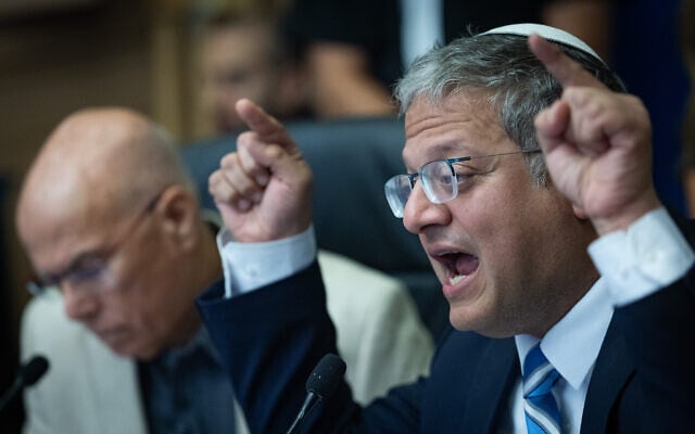 National Security Minister Itamar Ben Gvir attends a National Security Committee meeting at the Knesset in Jerusalem on October 27, 2025. (Yonatan Sindel/Flash90)
