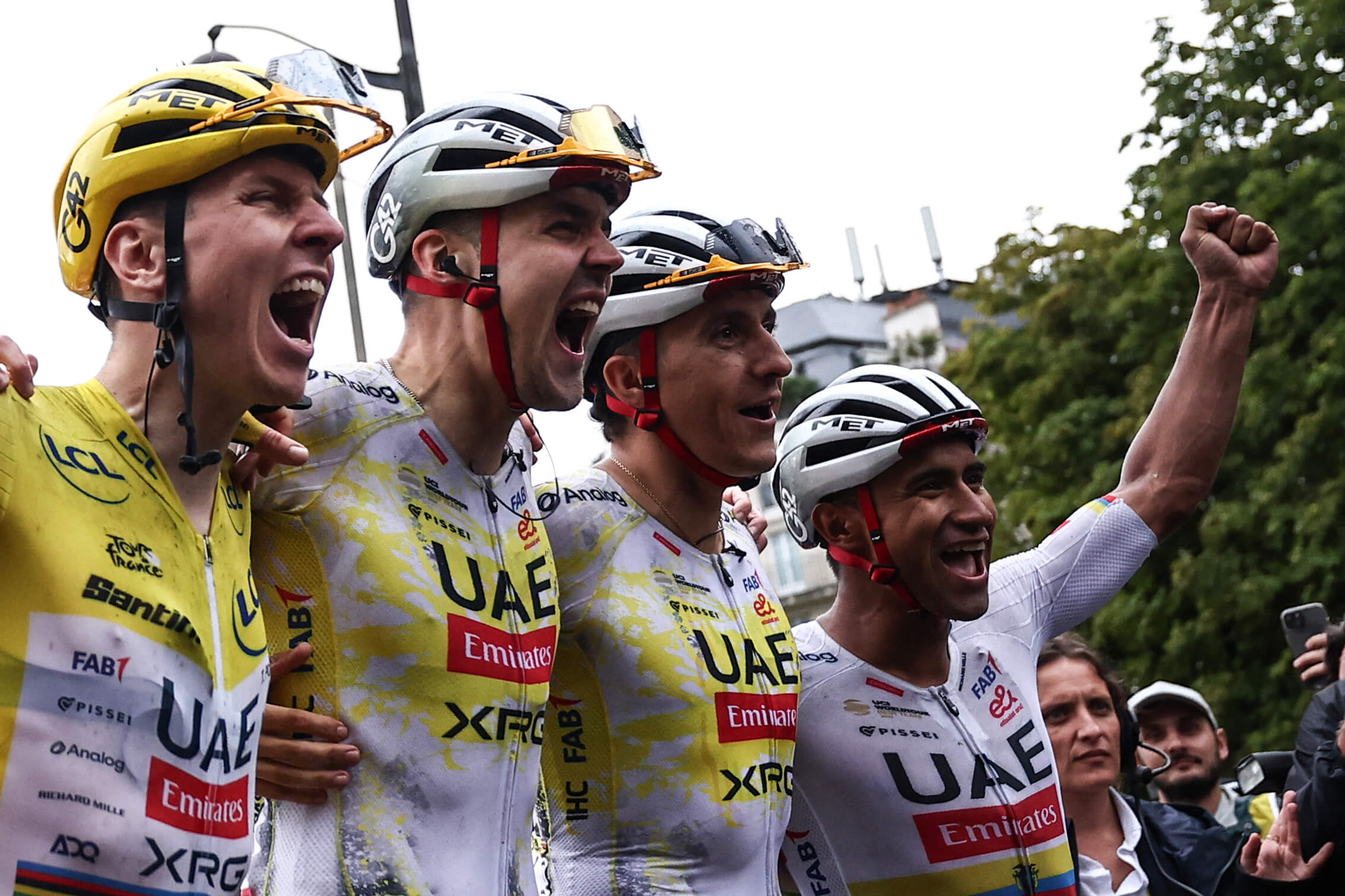Within 10 minutes of crossing the finish line in Paris five days later to confirm his fourth Tour victory in six years, Pogacar’s teammates locked arms around the yellow jersey, chanting in unison, “U-A-E! U-A-E!”