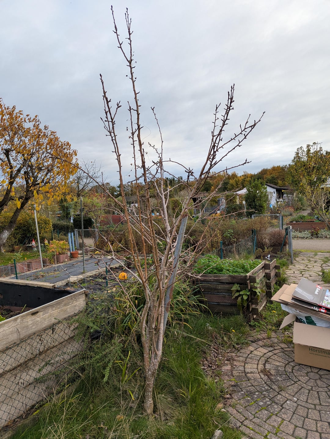 Da das Bäumchen noch vergleichsweise jung ist, würde ich ihn in die Altbaumtonne geben und mir aus einer Baumschule einen neuen besorgen, der für einen Kleingarten besser geeignet ist. Stichwort: Beratung!