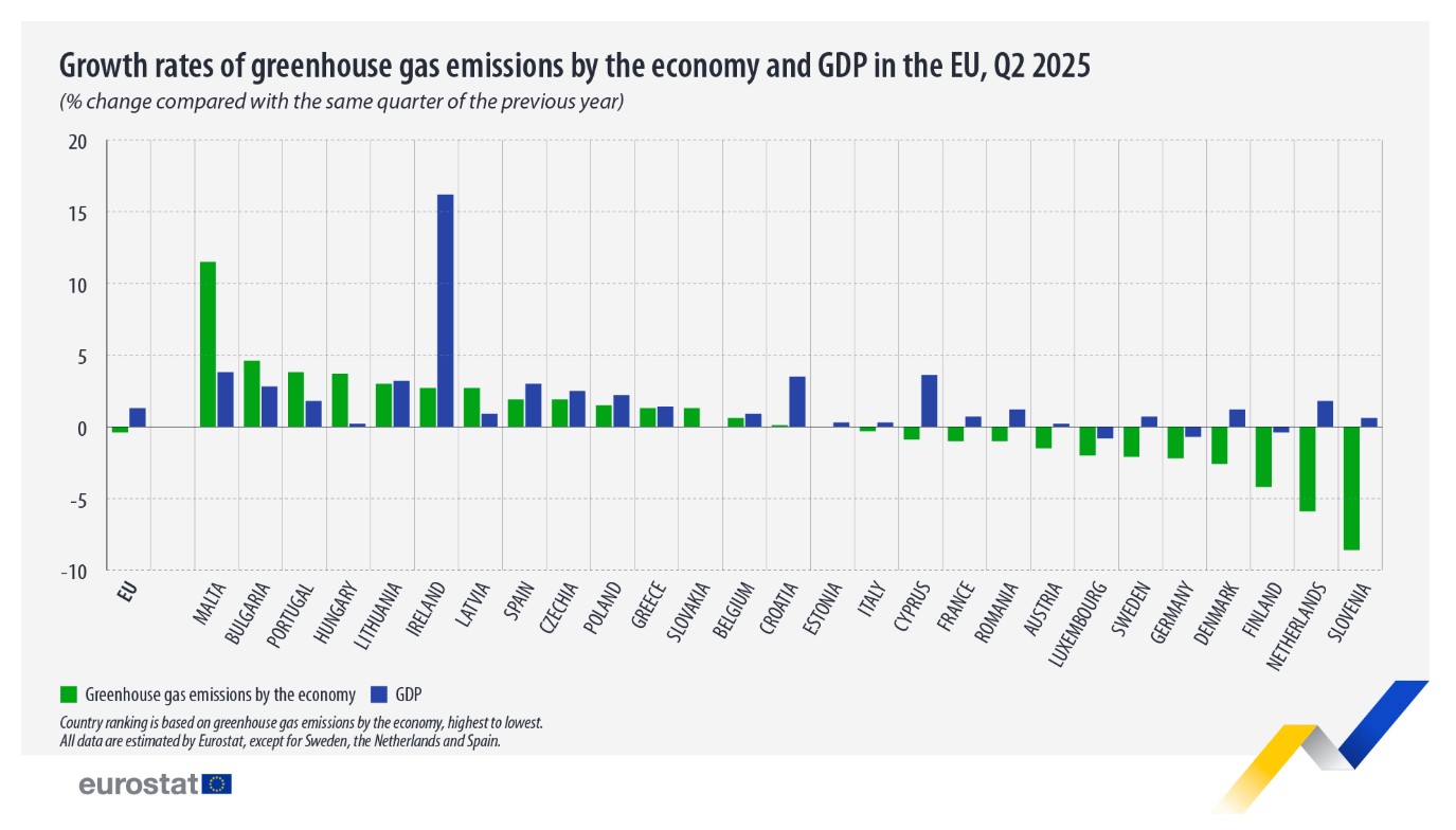 This places Cyprus among the member states achieving the dual objective of lowering emissions while supporting economic expansion, a trend increasingly prioritised in EU climate assessments.