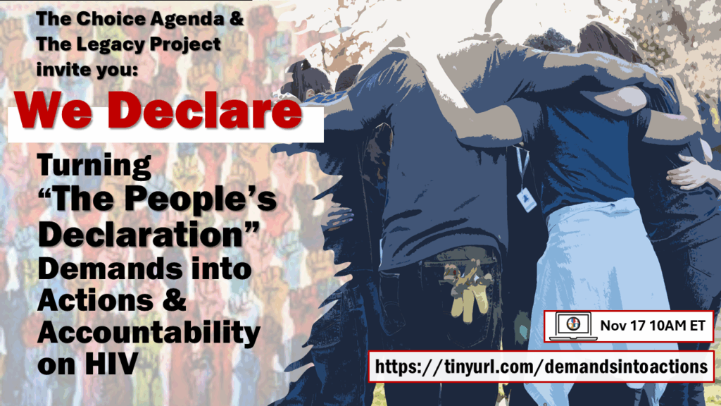 The People’s Declaration—currently with more than 500 signatories, charts out a number of community priorities and demands. Join The Choice Agenda, The Legacy Project, and a global panel to discuss moving these priorities into actions and accountability.