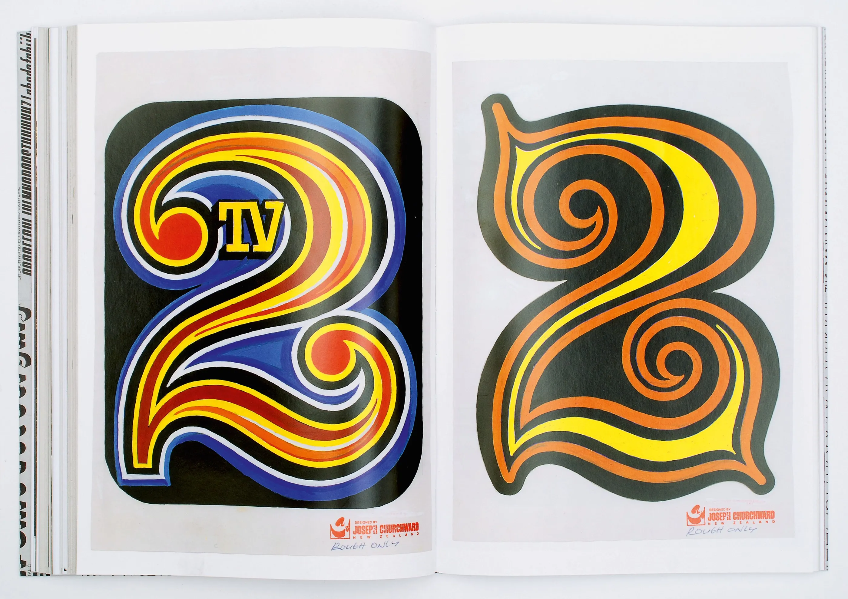 By all accounts, the definitive book on Churchward. He worked on it with author and designer David Bennewith via correspondence (packages full of photocopies, newspaper clippings and letters) and in-person meetings. It details the typographer’s lengthy and influential career – including some rejection letters received for fonts he sent out into the world, unsolicited designs for TV networks, political parties, government departments and even a new national flag. Currently out of print, Auckland Central Library holds a copy in its Heritage Collection, which can be viewed by appointment only, and there are copies at Manukau and Takapuna research libraries.