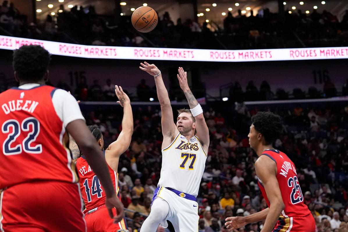 Luka Dončić ni imel dobrega strelskega večera v Smoothie King Centru (6/16 iz igre, 3/8 za tri). Prispeval je 24 točk, 12 podaj in 7 skokov v 40 minutah. Austin Reaves je bil najboljši strelec Lakersov z 31 točkami, Deandre Ayton se je izkazal z dvojnim dvojčkom (20 točk in 16 skokov), zgrešil pa je le en met (10/11).