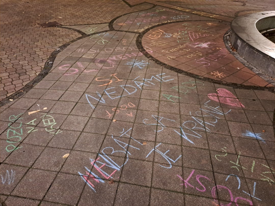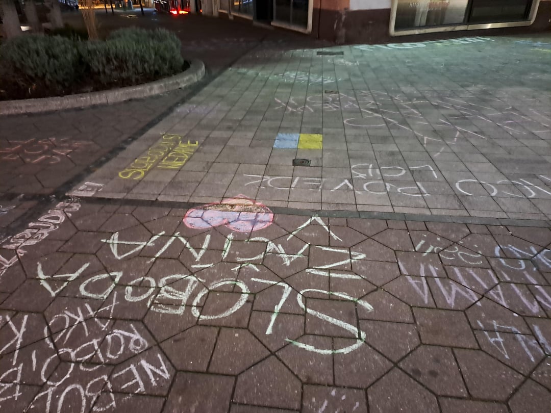 tl;dr Študent v Poprade nechal pred školou odkaz Ficovi, napísaný kriedou, lebo tam mal mať diskusiu so študentmi. Riaditeľka si ho začala natáčať a hovorila mu, že na neho podá trestné oznámenie. Počas vyučovania ho zobrali policajti na výsluch. Tak teraz ľudia po Slovensku nechávajú vláde takéto odkazy napísané kriedou.