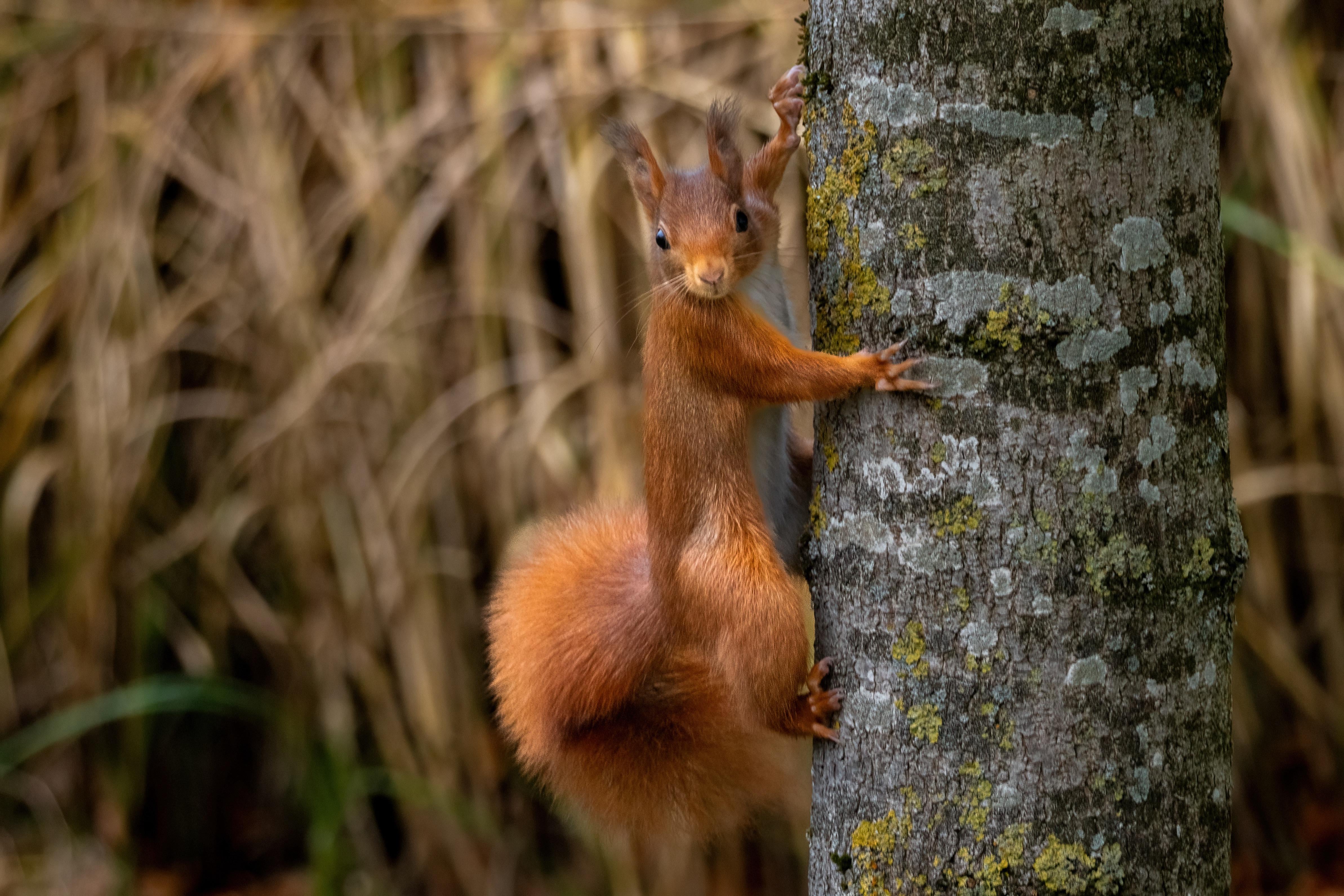 Oh, ein rotes Eichhörnchen, hier sehe ich meistens Schwarze.