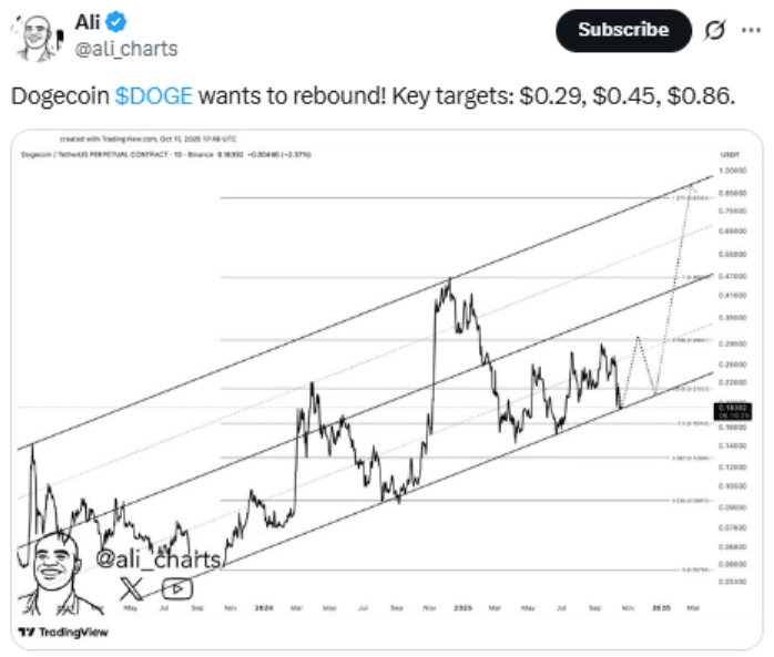 Analyst Ali predicts a significant rebound in the Dogecoin price. Their key targets are $0.29, $0.45, and $0.86. At its current price, DOGE is a compelling investment opportunity this year.