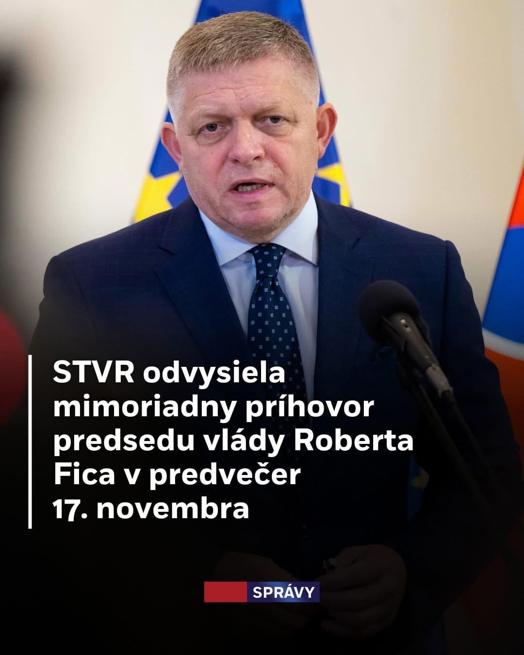 Slovenská televízia a rozhlas odvysiela v nedeľu 16. novembra 2025 o 18.45 h pred hlavnou spravodajskou reláciou na Jednotke, spravodajskom okruhu :24 a v Rádiu Slovensko Mimoriadny príhovor predsedu vlády SR Roberta Fica v predvečer 17. novembra.