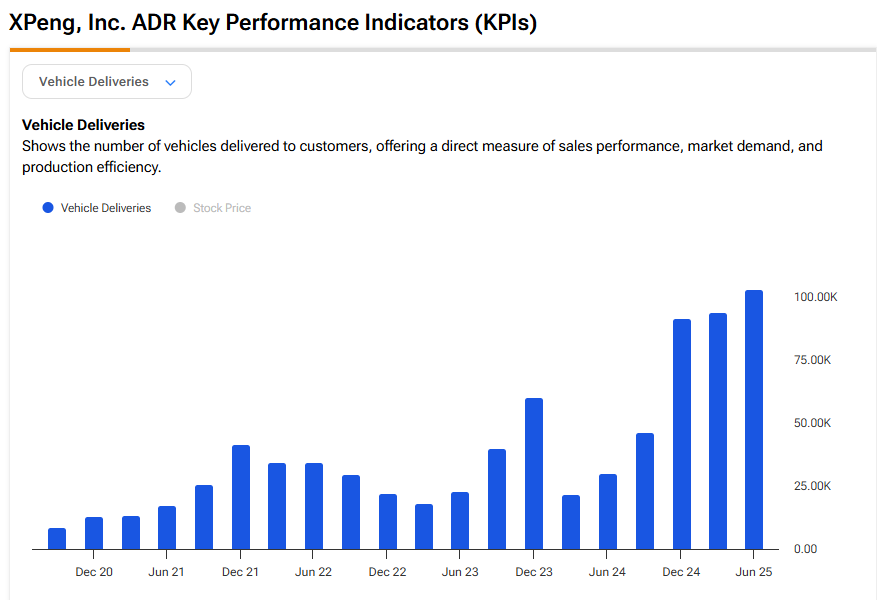 Xpeng has shown solid gains in key parts of its business, which helps shape expectations. The last quarter saw deliveries of 103,181 units, representing a 242% year-over-year increase. Revenue reached RMB 18.27 billion for that same quarter, and gross margin rose to 17.3%. Free cash flow exceeded RMB 2 billion, and total cash stood at above RMB 47.5 billion.