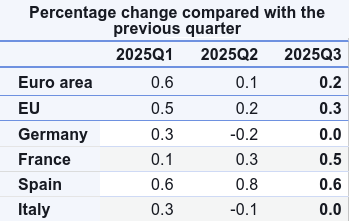 Brussels – Minimal, contained, yet present. Growth is there, at least according to Eurostat’s preliminary data on EU and eurozone gross domestic product for the third quarter of the year. Between July and September 2025, the GDP in the euro area increased by 0.2 percent and in the European Union by 0.3 percent compared to the previous quarter. An anaemic growth, but ongoing, since, even if at a “zero-point” level, the eurozone recorded positive trends: +0.6 percent in the first quarter, +0.1 percent in the second, and now +0.2 percent, certified by the European Statistical Institute.
