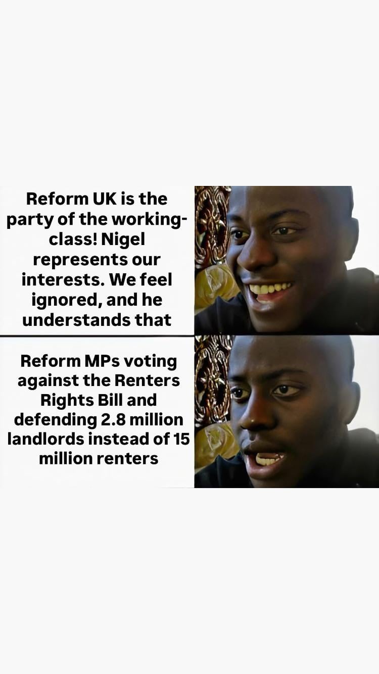 Reform is literally backed by the establishment, is the darling of the media, and has the government trying to be just like them, while being run by an ex banker and a bunch of former tories… How anyone can claim they are supporting the working class is beyond me…