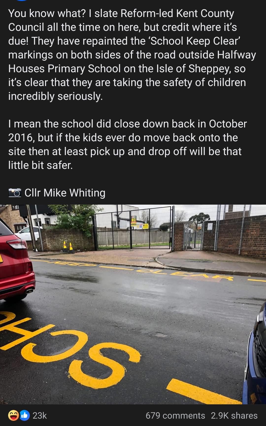 This is in no way a meme. However its still funny. I actually worked at that school 20 odd years ago. The school still exist, albeit on a new site. And the new school doesn’t appear to have any keep clear markings on the roads leading to it…… I wonder if these fresh markings were meant to have been there but someone messed up. Although it’s not a Reform issue, all councils are shite.