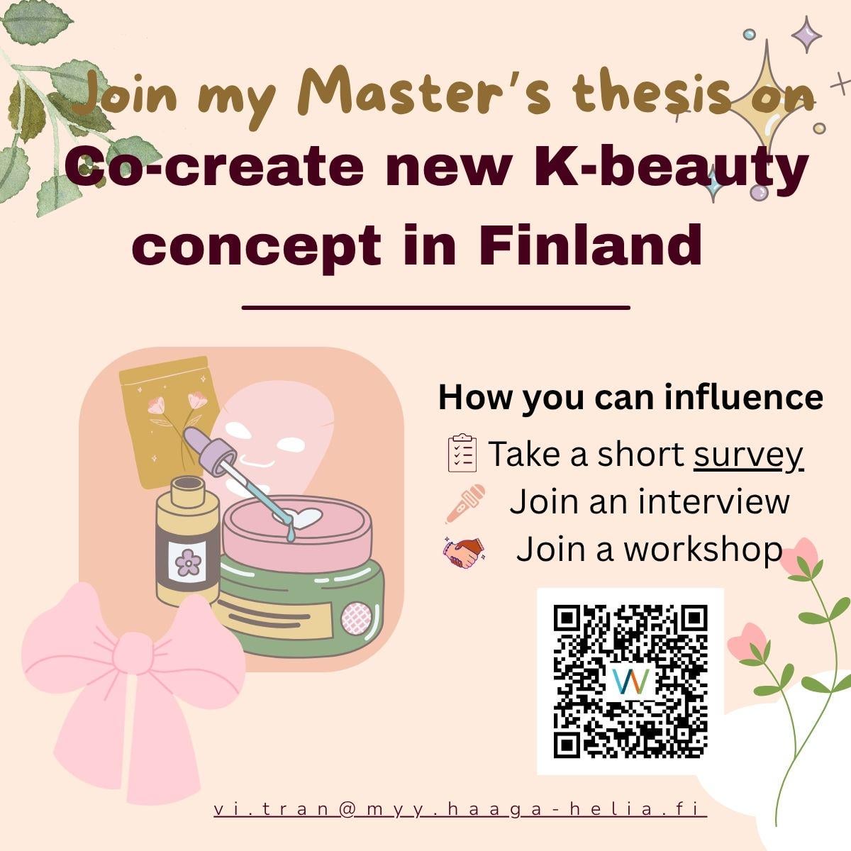 I’m currently completing my Master’s thesis with a Service Design approach at Haaga-Helia University of Applied Sciences. My research explores how Korean skincare users in Finland experience products, routines, and services — and how new service concepts could better support their needs.