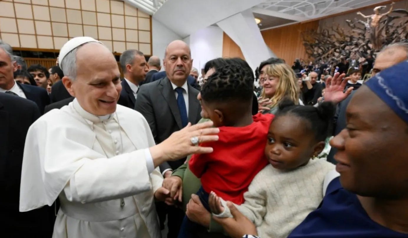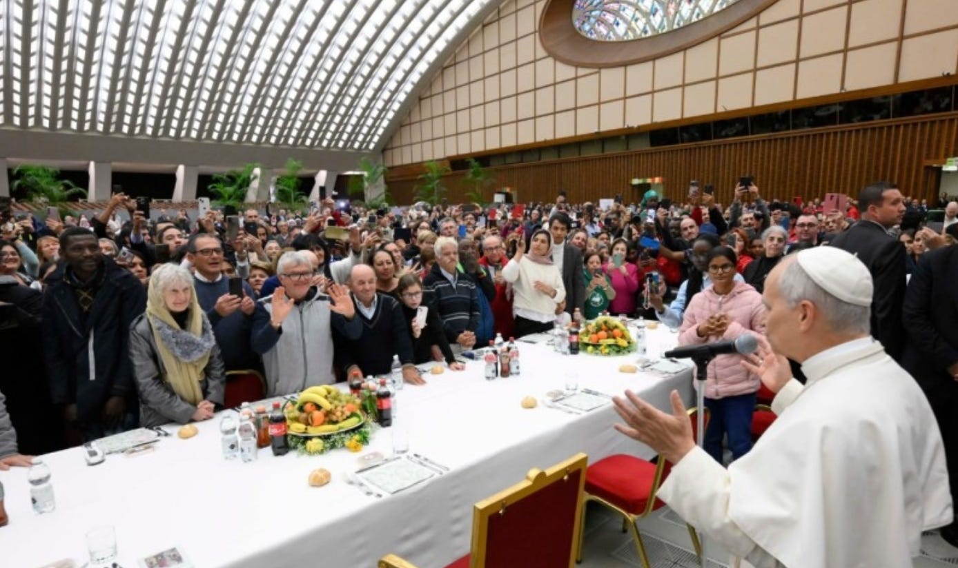 Surely, Pope Francis smiled down from heaven Sunday as his successor, Pope Leo XIV, carried on his legacy, sharing lunch, laughter, warm embraces and lots of love with some 1,300 guests from across the globe — the poor, the hungry, the homeless, the disabled, the marginalized, the migrants and refugees who fled poverty hunger and wars.