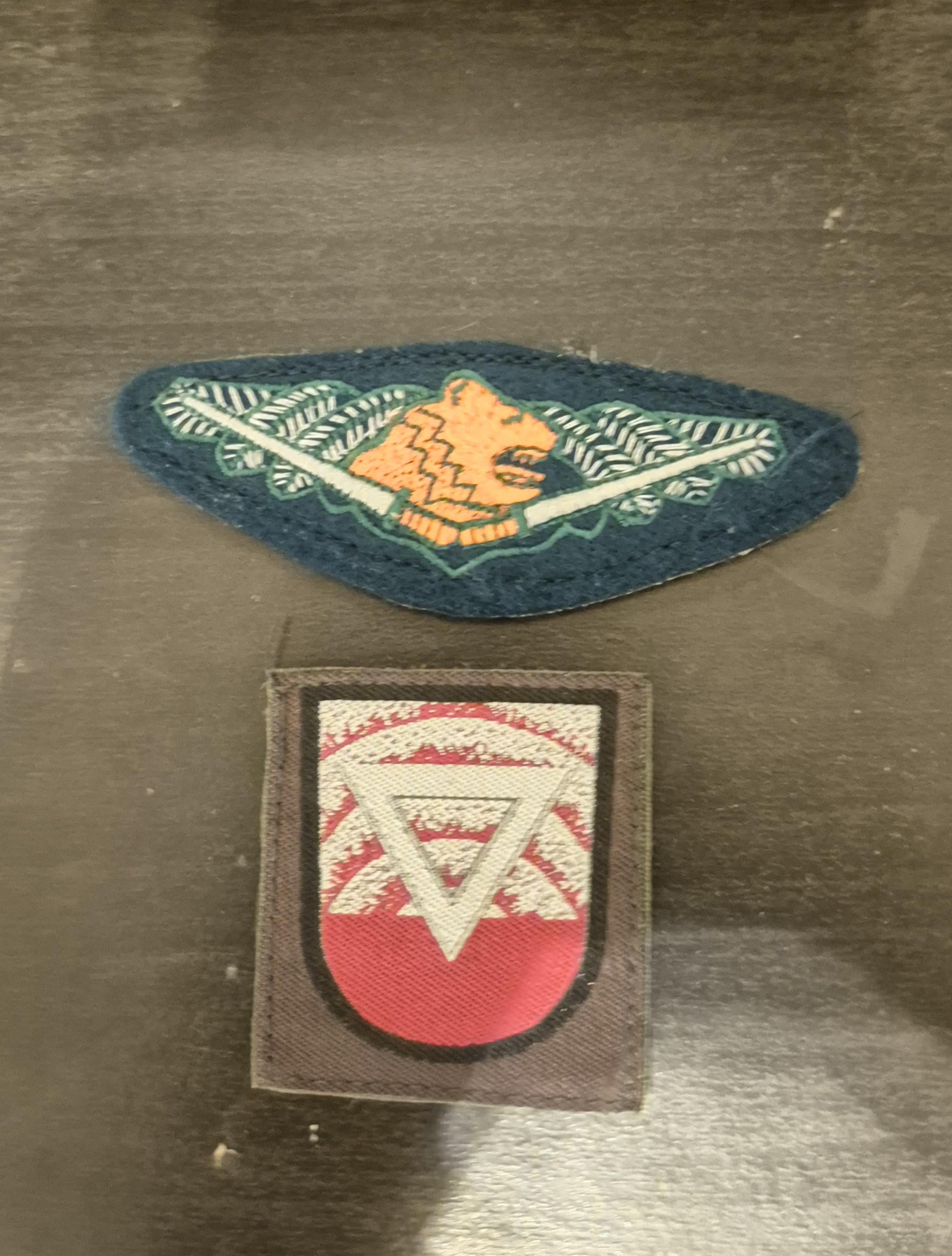 Old border guard uniform patch and old counter-battery radar operator patch.