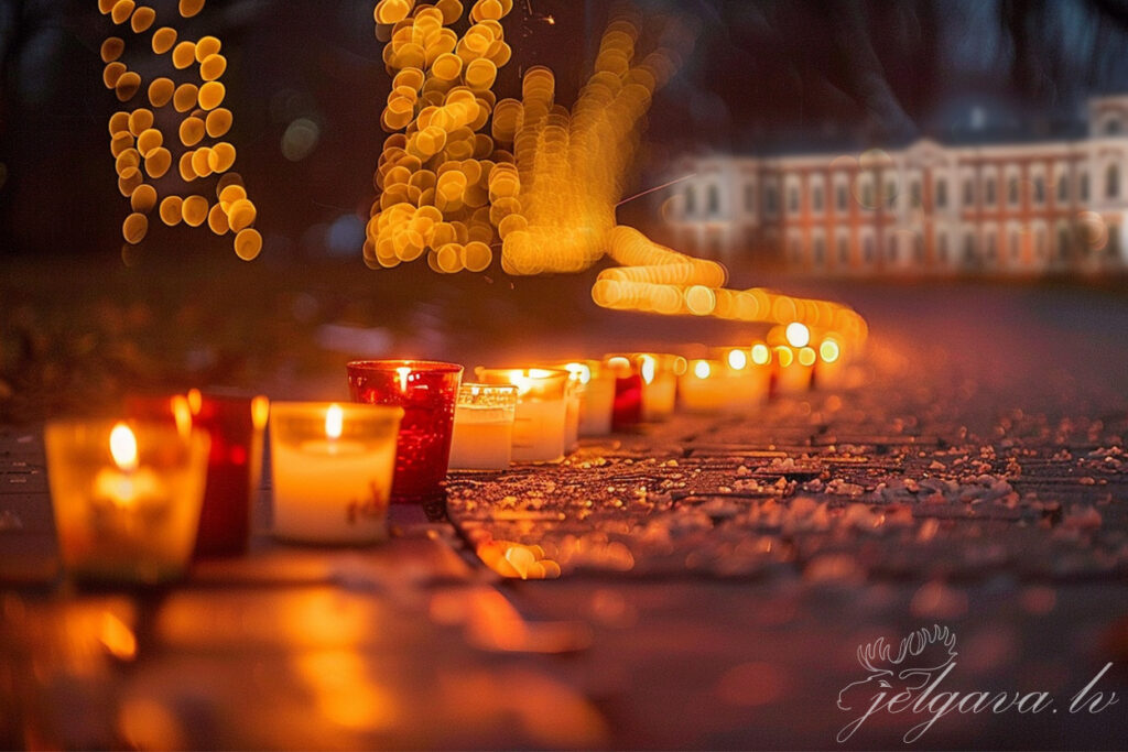 Jelgavā, svinot Latvijas 107. dzimšanas dienu, no plkst. 17.30 līdz 21 iedzīvotāji aicināti Jelgavas pils parkā veidot sveču kompozīciju Latvijai “Mūsu ceļš”. No Driksas tilta līdz pils dienvidu vārtiem kā jelgavnieku dāvana Latvijai svētkos kopīgi tiks veidots gaismas ceļš valsts karoga krāsās no sarkanām un baltām svecēm.
