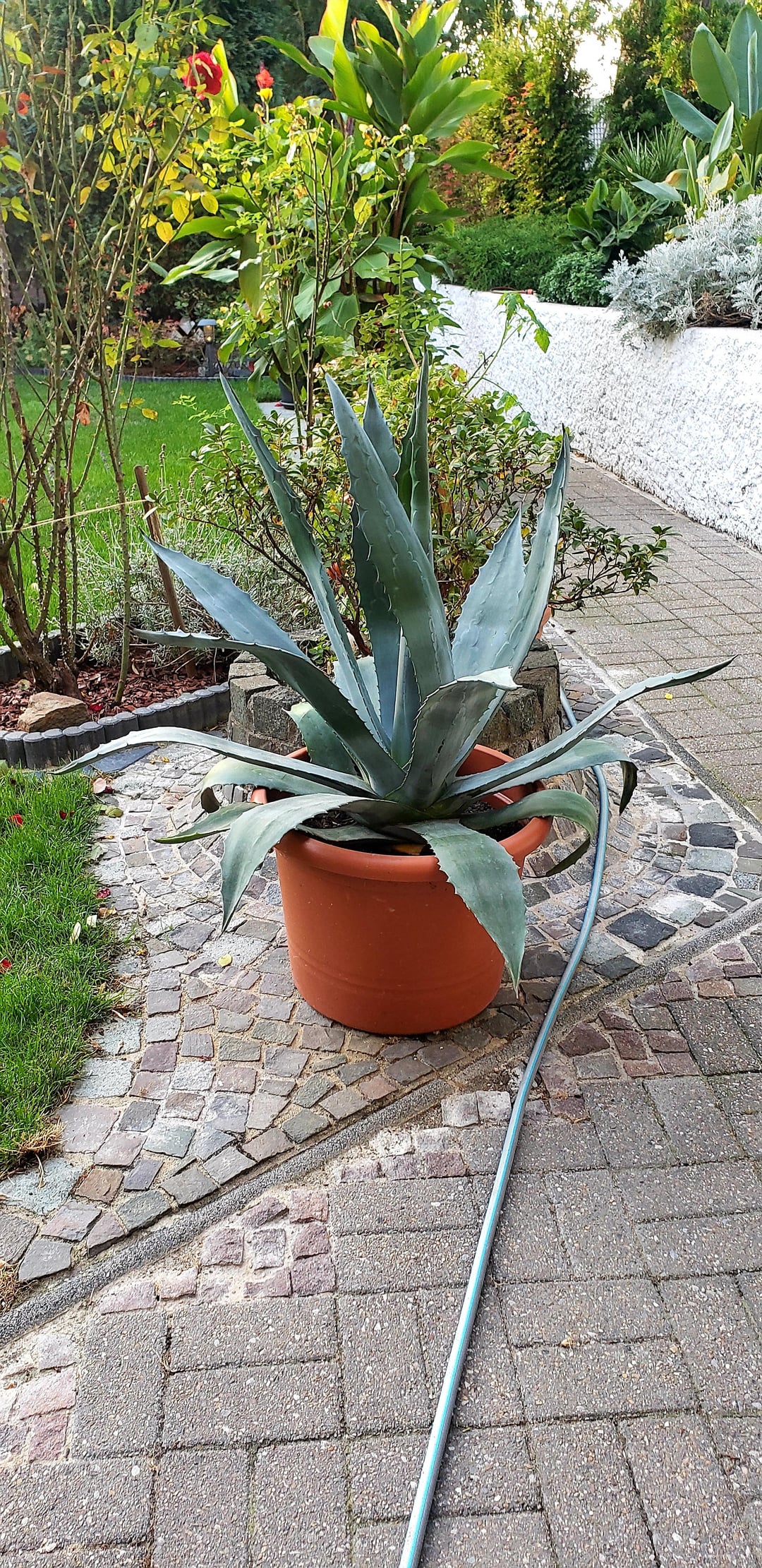 Wir haben hier 3 große Agaven freistehend im Garten, ca. 8 Jahre alt. Auch bei -18 Grad hat sich der Vorbesitzer um Winterschutz nie geschert und sie wachsen bisher jedes Jahr prächtig. Evtl die unteren Blätter abschneiden, wenn mehr Höhenwachstum gewünscht ist. Es sind eigentlich sehr robuste Pflanzen. Achtung: Der Pflanzensaft beim Schneiden ist giftig.