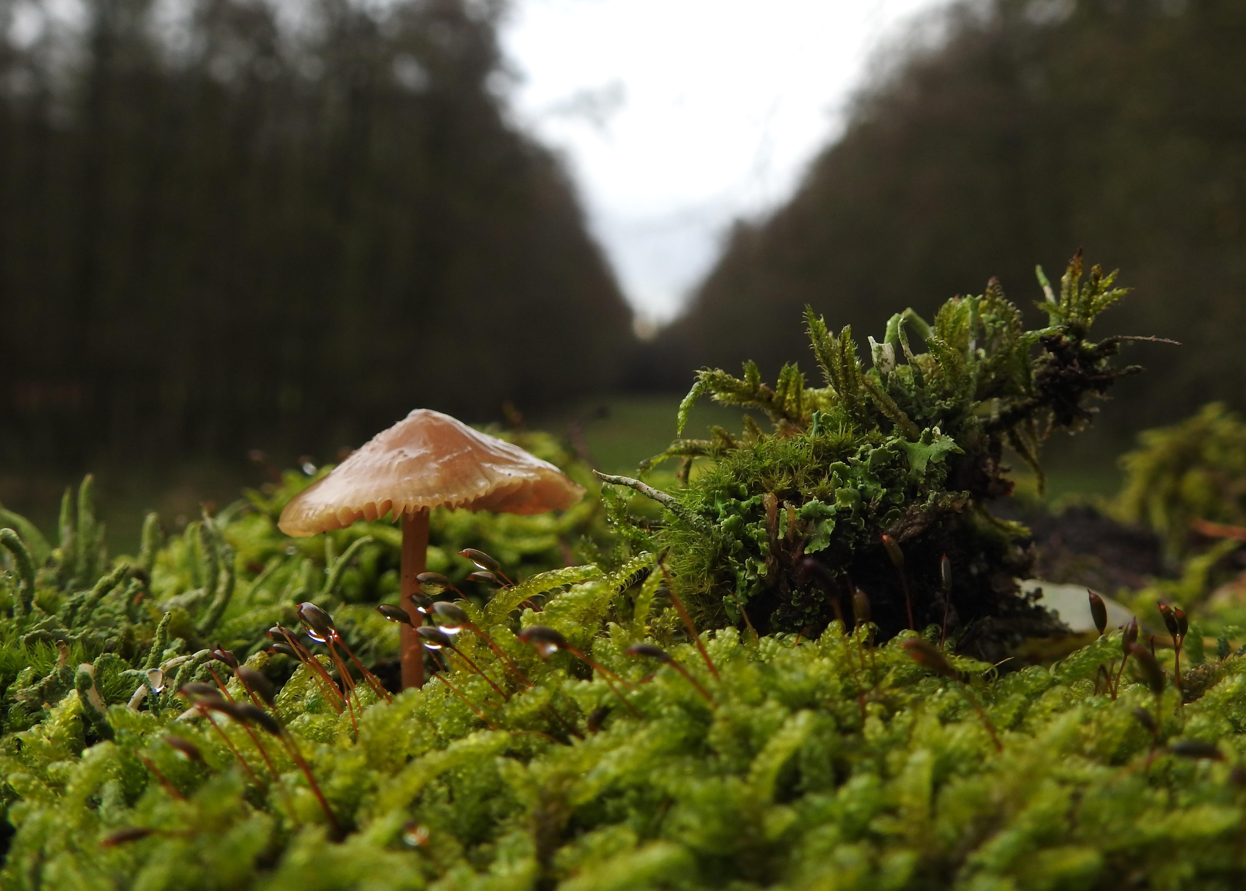 Eine eigene kleine Welt hat sich auf einem alten Zaunpfahl gebildet