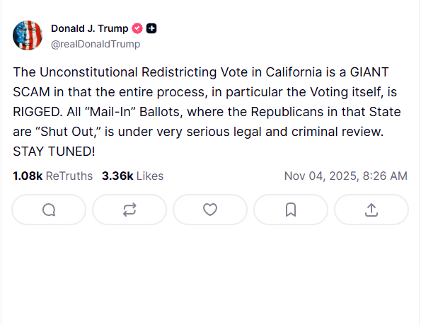 Shortly after, Newsom posted Trump’s post on X, saying “The ramblings of an old man that knows he’s about to LOSE.”